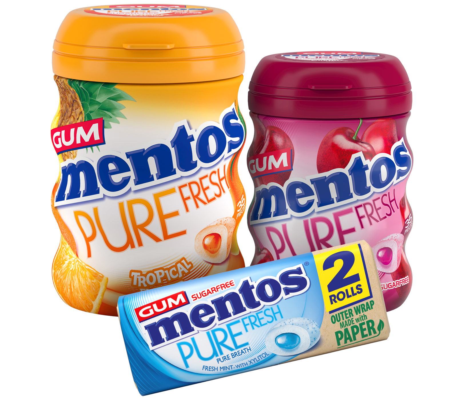 MENTOS PURE FRESH GUM NOW IN A PAPER BOTTLE*